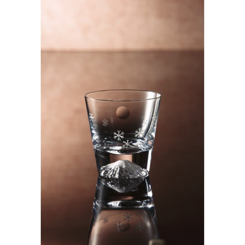 田島窯 江戸硝子 富士山 ロックグラス(木箱入) 月と雪の結晶 TGS-19T-R3
