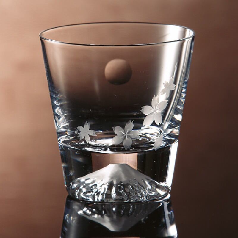 田島窯 江戸硝子 富士山 ロックグラス 日本の四季(お名入れ) 月と桜 TGS-19T-R4(お名入れ)*