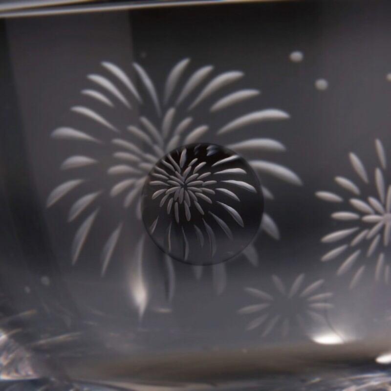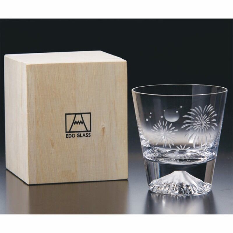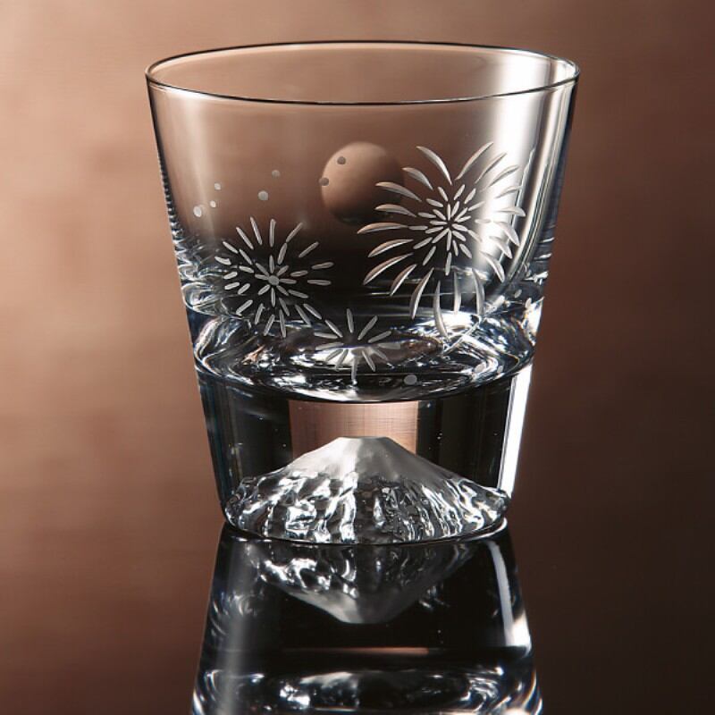 田島窯 江戸硝子 富士山 ロックグラス 日本の四季(お名入れ) 月と花火 TGS-19T-R1(お名入れ)*