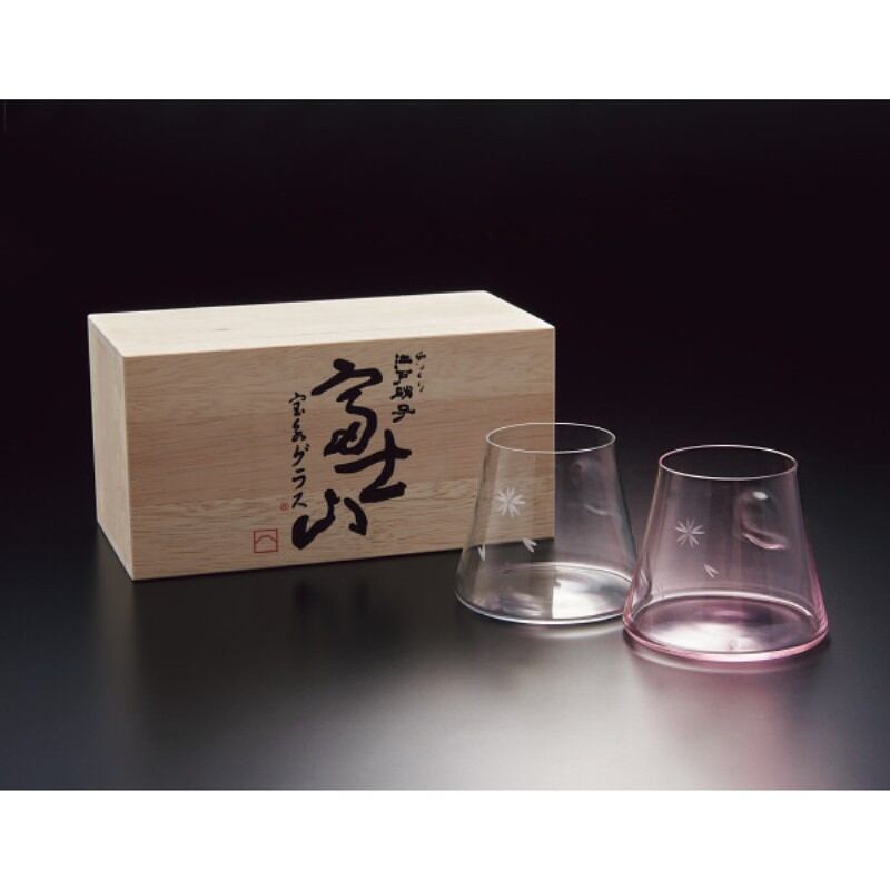 田島窯 江戸硝子 富士山 宝永グラス 紅白ペア(木箱入) TG13-014-2CP