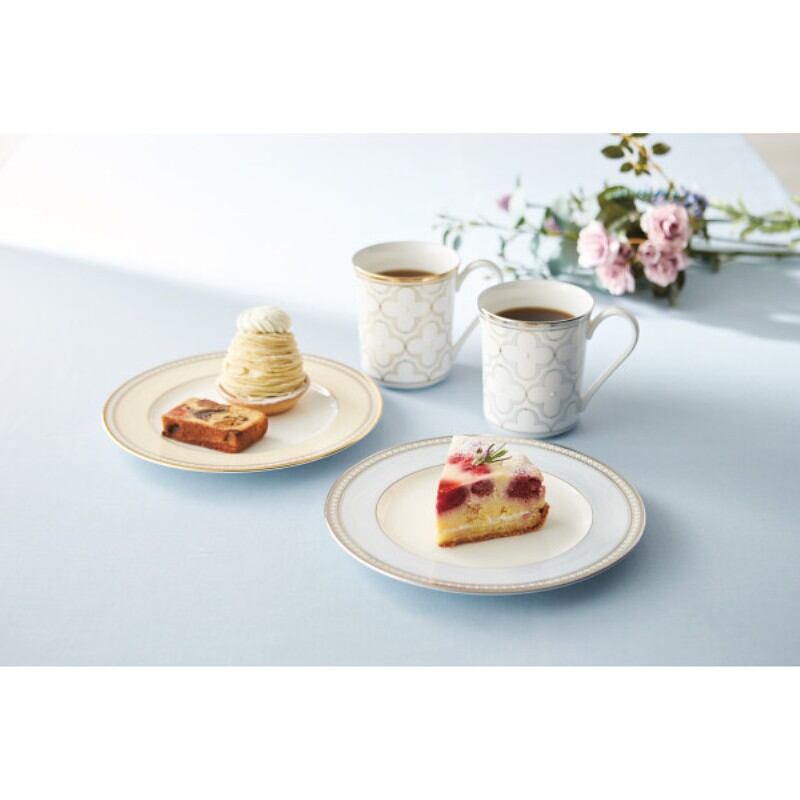 朝食やコーヒーブレイクに使いやすいマグとプレートを色変わりでペアにしました。幸運を呼ぶ四つ葉のクローバーがモチーフになった贈り物にもおすすめのデザインです。