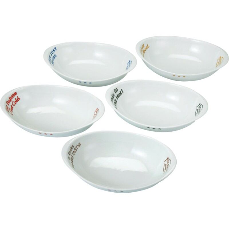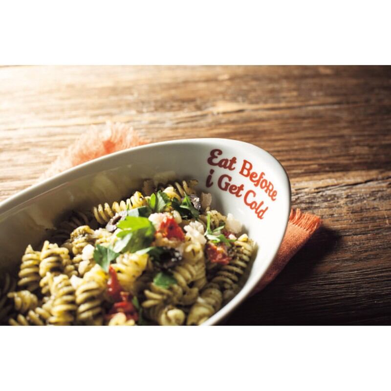 料理を盛り付けるのが楽しくなるようなウィットに富んだメッセージ入り。ほどよい深さのオーバルボウルは、カレーやパスタなどのワンプレートランチにぴったりです。