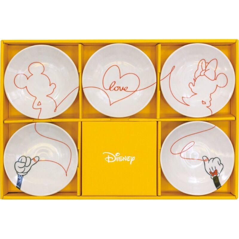 「ラブイズ」はミッキーマウスとミニーマウスの左手の薬指を結んだ運命の赤い糸をテーマにしたデザインテーブルウェア。軽量陶器で軽くて使いやすい仕様です。