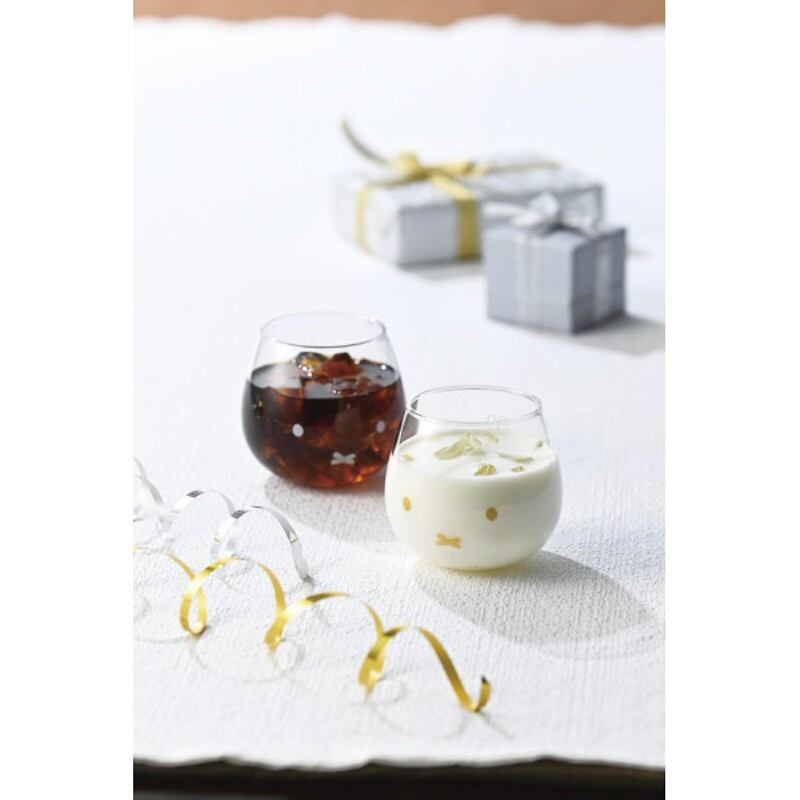 ゆらゆらと揺れる丸いタンブラーにミッフィーの顔をあしらったタンブラーのセットです。デザインには金色と銀色を使い可愛く華やかなミッフィーになりました。ブライダルの贈り物や、お誕生日のお祝いにもピッタリでおすすめ商品です。