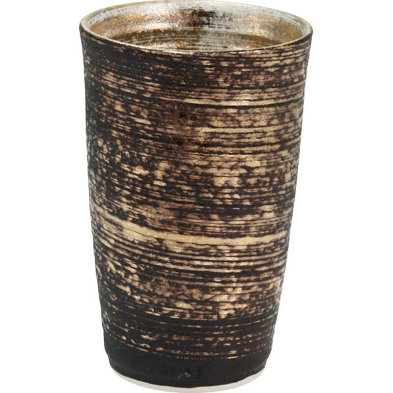 陶悦窯 陶酒杯 木箱お名入れ 金色刷毛