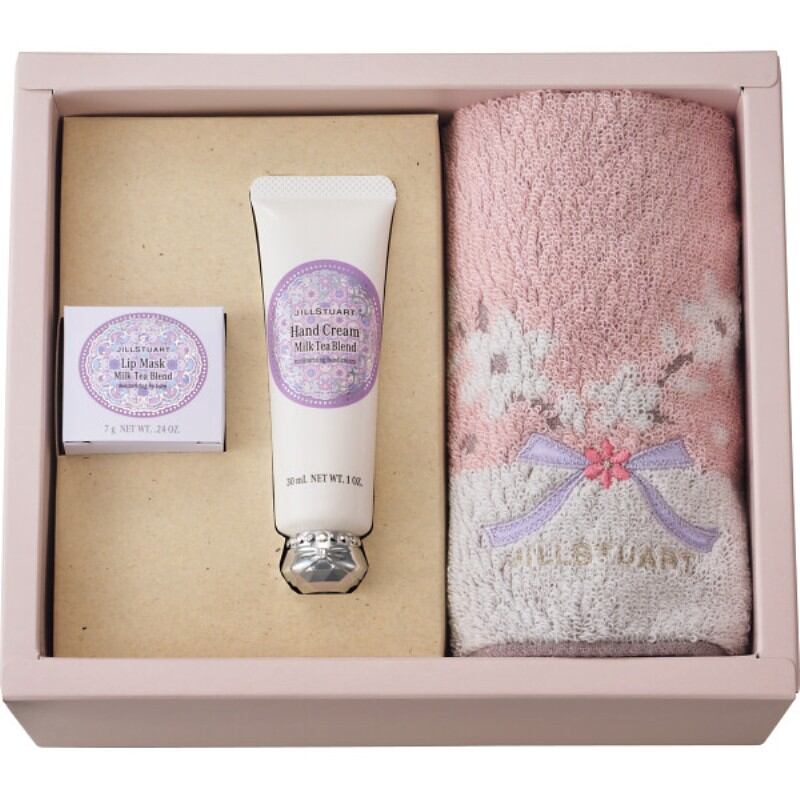 商品内容:●セット内容=タオルハンカチ×1枚・リップマスク(ミルクティーブレンド)7g・ハンドクリーム(ミルクティーブレンド)30g×各1