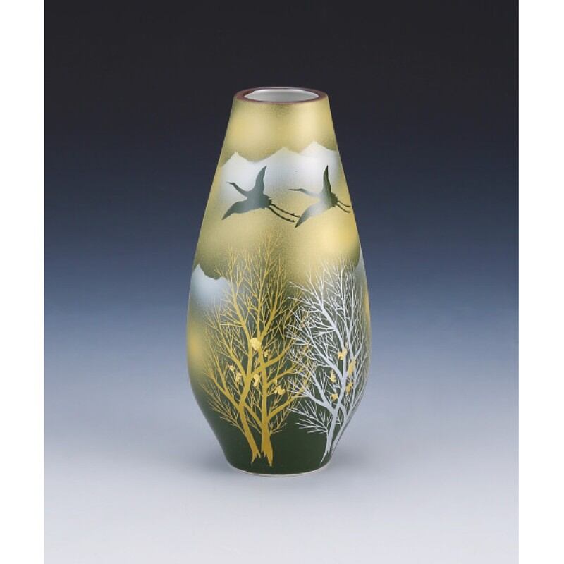 九谷焼 6号花瓶 金箔木立連山に鶴 130547