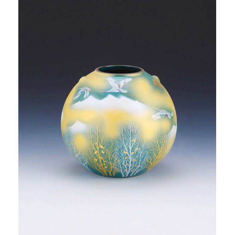 幻想的な仕上がりが特徴の「吹き付け技法」により絵付けされた縁起の良い花瓶です。季節や場所を問わず、お楽しみいただけます。