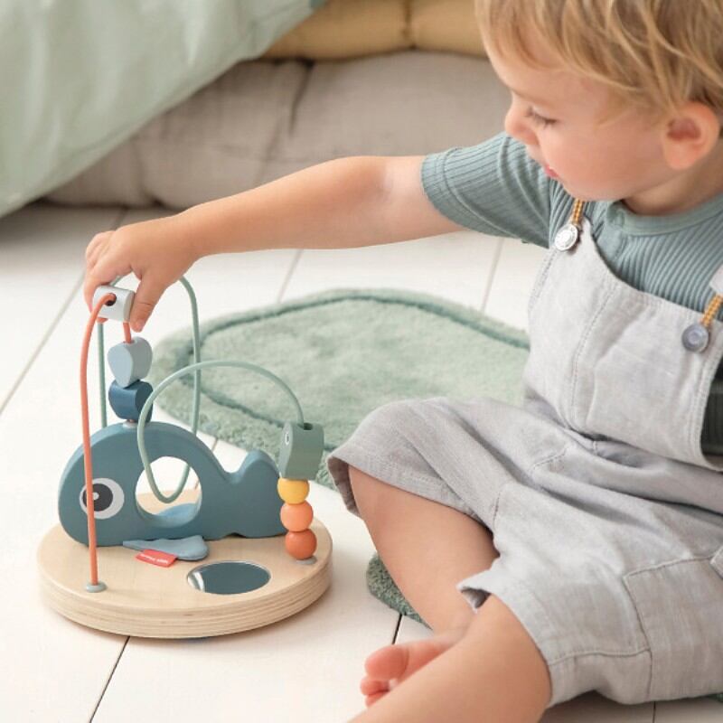 海を泳ぐウォーリーのまわりで小さなパーツを行き来させ、赤ちゃんの指先感覚を養いましょう。ウォーリーのお腹の穴を上手く通すことができるかな? ヒレからはどんな音がするかな? 鏡を覗くとそこには何が見えるかな?
