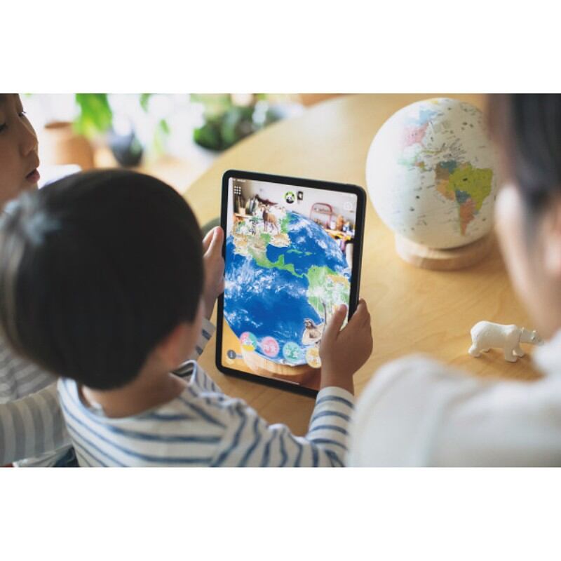 地球の今が見えるAR地球儀「ほぼ日のアースボール」に、あたらしい仲間が加わりました。「旅」を意味する新本体は、国名と国境の記載があり、アプリを使わなくてもたのしむことができます。精緻な世界地図や、世界のさまざまなモチーフを表現した小さなイラストは、こどもから大人まで、知的な探究心を刺激します。国々を美しくカラフルに色分けしたデザインは、見やすいだけでなく、インテリアとしても最適です。もちろんアプリをかざせば、さまざまな地球や世界の情報が飛び出してきます。