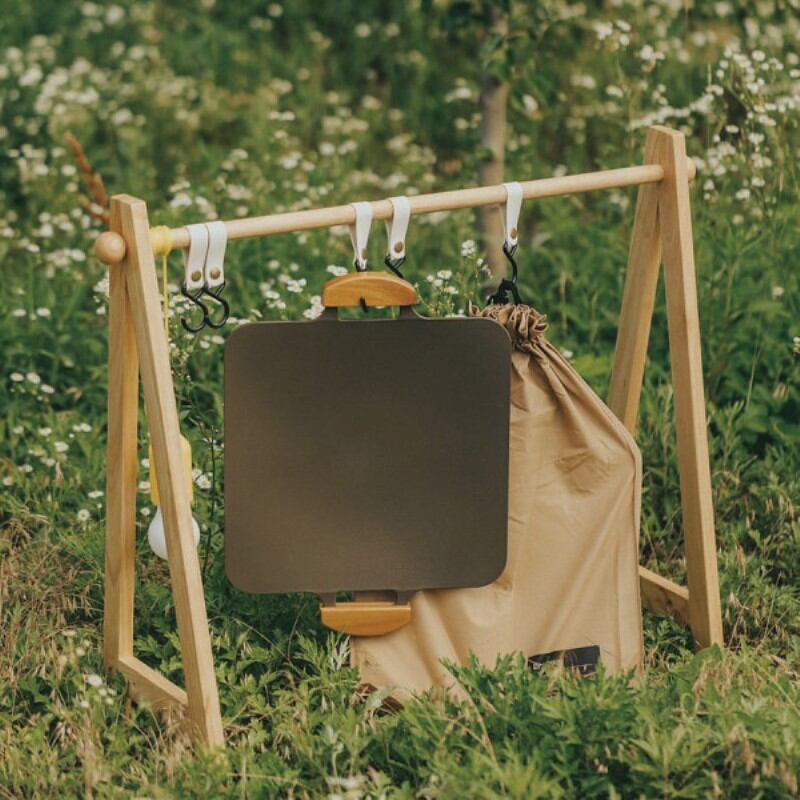 おうちでもアウトドアでも使える木製ハンドルでかわいいカラフルなグリルプレート<ソリッド>。おしゃれな大皿として調理した料理をそのまま食卓に出したり、キャンプをはじめアウトドアシーンにも大活躍です。本体にはセラミックコーティングがされており、耐久性も高く、赤外線効果でじっくりと火が通り熱伝導率が高いので素早く調理が可能。シーズニング不要なので、すぐお使いただけます。