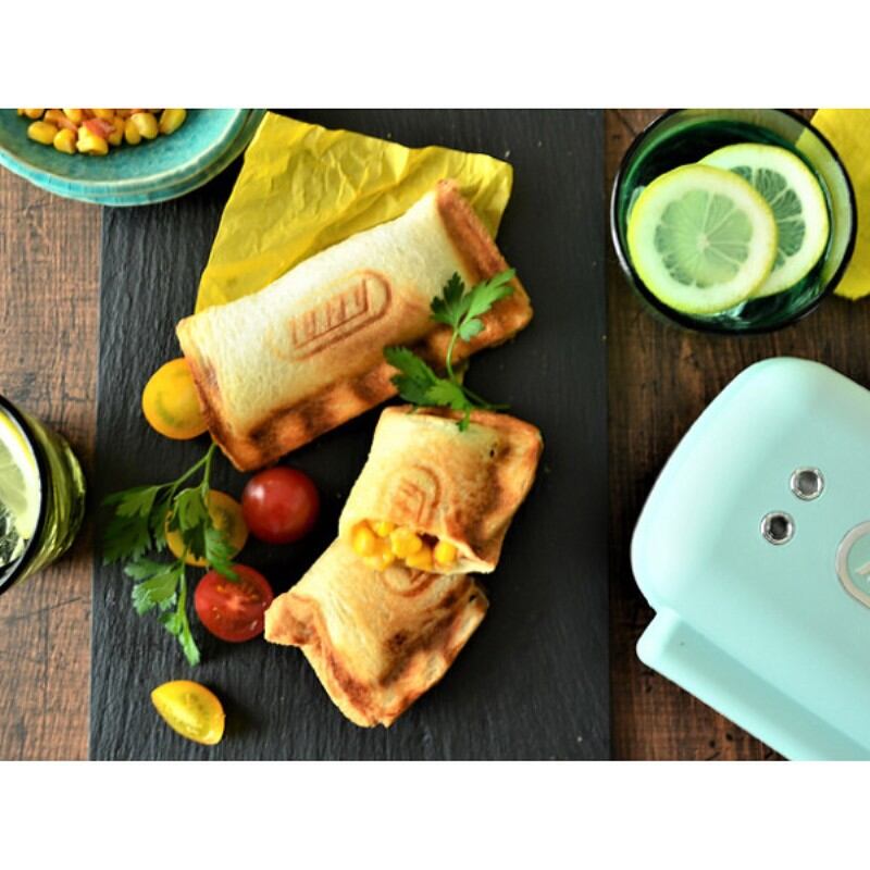 ちょうど良い食べきりサイズのホットサンドがカンタンに!一枚の食パンを折りたたんで作るハーフホットサンドができる電気ホットサンドメーカーです。
