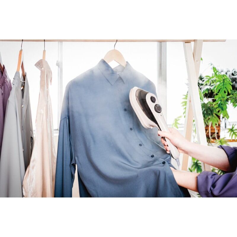 洋服をハンガーにかけたままサッとシワ伸ばしができるハンディーアイロン&スチーマー。11cm幅のワイドスチームで、洋服を一気にシワ伸ばしできます。アイロン機能もあり、襟、袖、パンツの折り目付けにも便利。