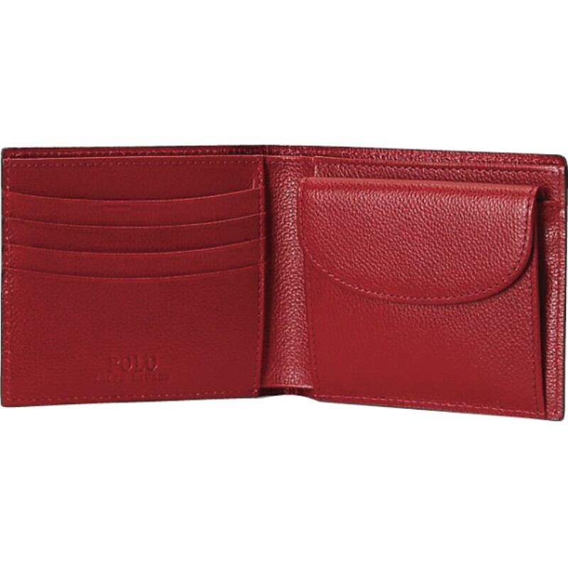 コントラストのあるカラーを内側に配したエンボス加工のレザーウォレット。紙幣用ポケット、カードスロット、スナップ付きコインポケットを備え、収納力に優れ、スリムなデザインにシングル ニードルステッチの縁。フロントにRalph Laurenのシグネチャーであるポニーのデボス加工、内側にPolo Ralph Laurenのデボス加工。レザーの裏地にはビスコースの裏地を施したポケット。