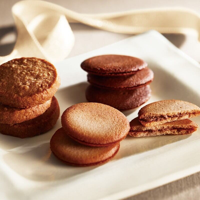 チョコレートを練りこんだサクッとした口あたりのラングドシャ生地でチョコレートをサンドした2種類のクッキーとサブレのアソートメント。