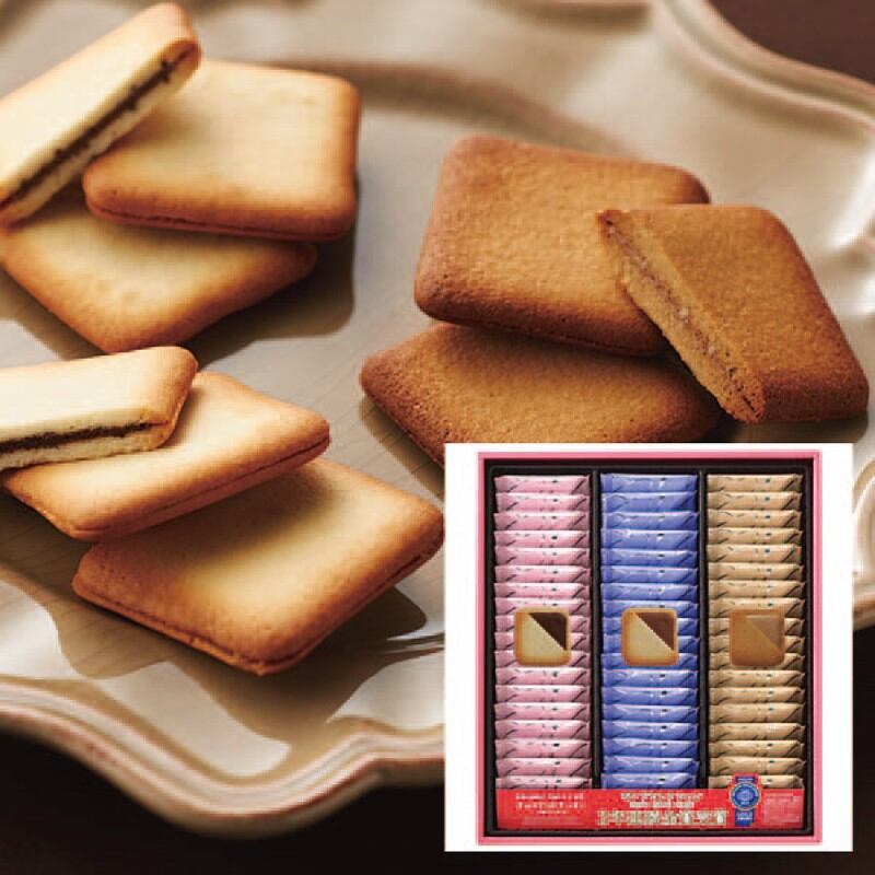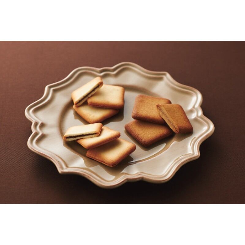 サクッとしたラングドシャ・クッキーでなめらかなチョコレートクリームをサンドしました。チョコレートクリームはスイート、ミルク、コーヒーの3種類。20年以上作り続けてきたロングセラースイーツです。
