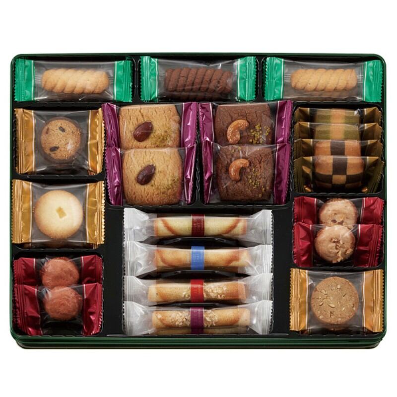 商品内容:●コルベイユ4種×各2、アーモンドクッキー×2、カシューナッツクッキー×2、レモンクッキー×4、アメリカンリングクッキー×3、ココア&プレーンクッキー×2、抹茶&プレーンクッキー×2、ヘーゼルナッツクッキー×4、ツイストクッキー2種×9、アーモンドマカロン×2、ストロベリーマカロン×2(計40個)