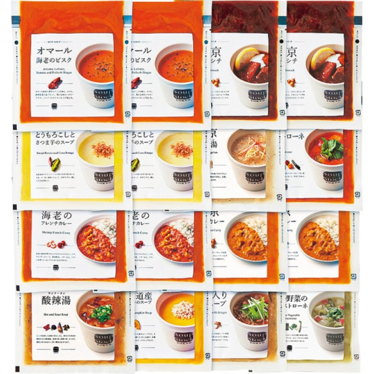 商品内容:●オマール海老のビスク・とうもろこしとさつま芋のスープ・東京ボルシチ・海老のフレンチカレー・東京チキンカレー 各180g×2、東京参鶏湯・緑の野菜のミネストローネ・ミネストローネ・生姜入り和風スープ・北海道産かぼちゃのスープ・酸辣湯 各180g×1、出産祝い専用リーフレット、ベビーマンスリーカード
