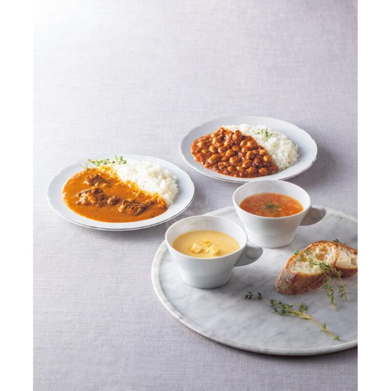 それぞれの野菜の特徴をいかして作り上げた帝国ホテルスープ3種と、スパイスの効いた具材の旨味引き立つ帝国ホテルカレー2種の缶詰ギフトです。